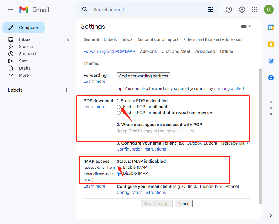 4.最后可以看到imap访问和pop3下载功能并勾选开启。