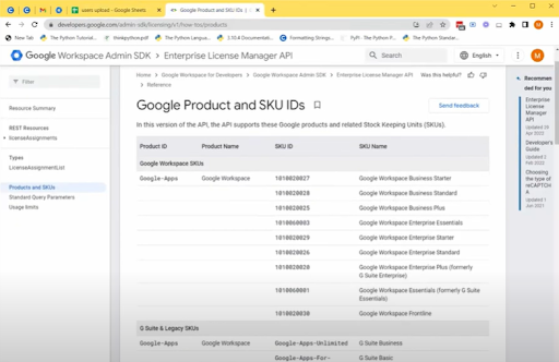 7. 我们今天要查看的 CSV 模板的最后一部分是“新许可证”标题。将新用户上传到 Google 管理控制台时,您需要使用 SKU ID(库存单位 ID)为每个人分配新许可证,该 SKU ID 位于屏幕左侧的“产品和 SKU”标题中,如下所示如下图